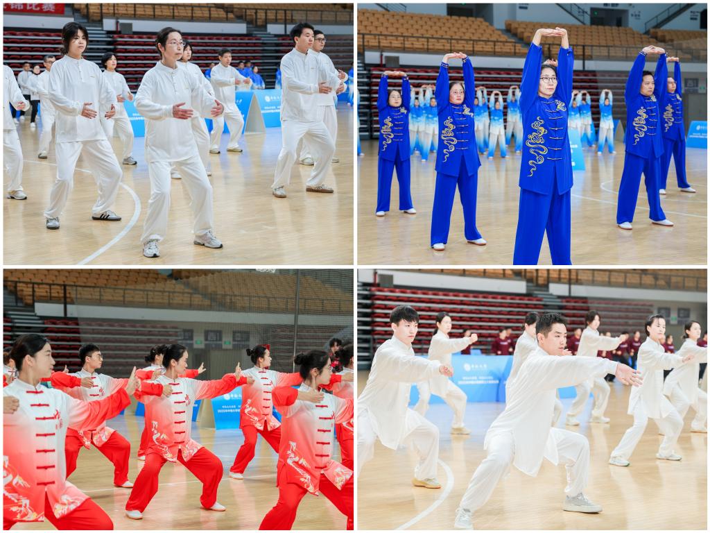 上午9点,体育馆内气氛热烈,参赛队员们身着统一的太极服或运动装,精神抖擞,队列整齐。比赛在庄严的国歌声中拉开帷幕。校工会常务副主席姬志洲在讲话中强调了开展教职工文体活动对于促进身心健康、增强凝聚力、服务学校发展大局的重要意义,表示希望此次比赛能进一步激发广大教职工参与体育锻炼的热情,帮助养成科学健身的良好习惯,从而营造积极向上、和谐健康的校园氛围。