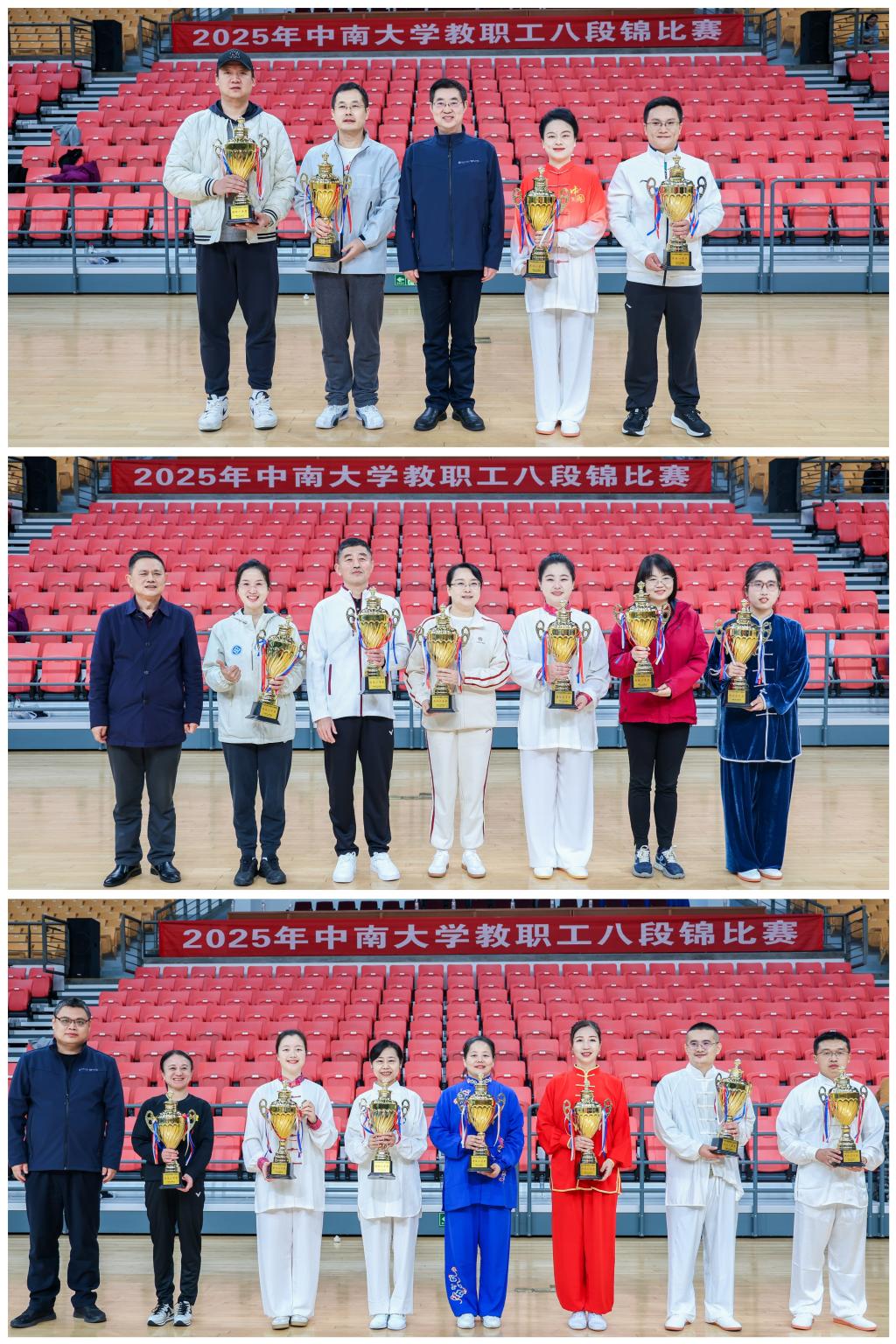 本次比赛不仅为全校教职工提供了一个切磋技艺、展示风采、交流情感的平台,更极大地推广和普及了“八段锦”这一民族传统健身项目,引导大家树立“每天锻炼一小时,健康工作五十年,幸福生活一辈子”的理念。许多参赛教职工表示,通过备赛和参赛,不仅锻炼了身体,放松了心情,更深刻感受到了中华传统养生文化的博大精深和团队协作的力量。他们将继续坚持练习,并带动更多同事加入健身行列,以更饱满的精神状态和更强健的体魄,积极投身于学校的教学、科研、管理、服务等各项事业中,为学校高质量发展贡献智慧和力量!