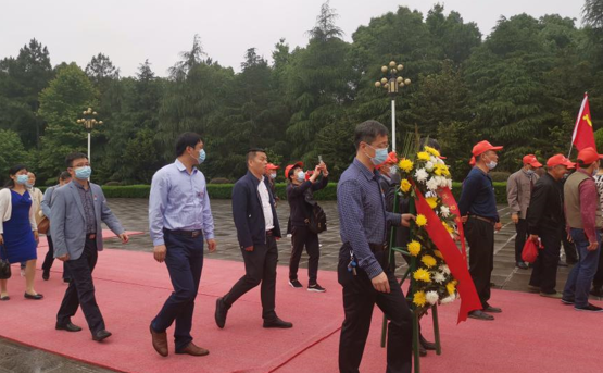 参观开始,全体党员从颇具江南古建筑风格的刘少奇故里门楼出发,沿着苍松翠柏掩映下的百级台阶拾级而上,来到香樟玉兰掩映、绿篱杜鹃环绕下的刘少奇同志铜像广场,两边山头青松傲立、杂树生花,四周山头连绵起伏、幽远深邃,似乎向我们诉说刘少奇同志波澜壮阔的一生。在贺志军书记和高广军院长的带领下,大家向刘少奇同志敬献花篮、鞠躬敬礼,环绕刘少奇铜像一周,表达了对革命先辈的无限敬意和深切怀念。