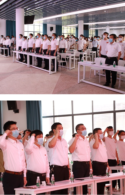 仪式在庄严肃穆的国歌声中拉开帷幕。庆祝大会上,学院党委副书记杨鹰同志带领全体党员宣誓,重温入党誓词,在党旗下庄严宣誓,这既是一份政治誓言、一份庄严承诺、一份坚定决心,也是作为共产党员应有的责任担当。