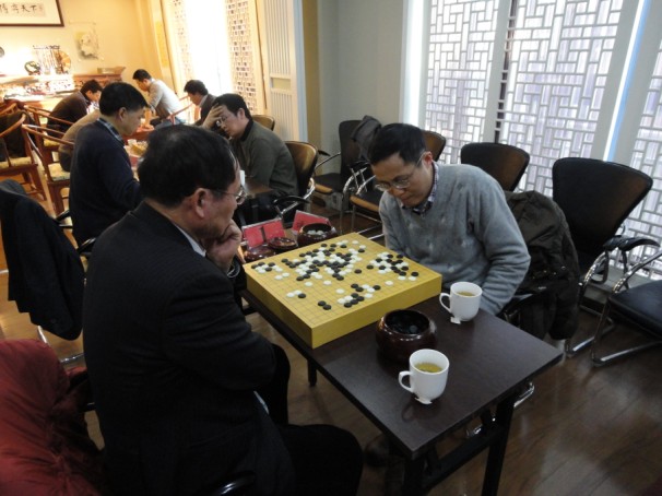 23日上午到达北京。中午,首都师范大学副校长邱运华教授宴请tapplay官网教工围棋队一行。下午,在国学网总裁尹小林的“元典方策”会馆,tapplay官网与首都师范大学教职工围棋队正式拉开了战幕。两场比赛,tapplay官网均3比2险胜。“元典方策”作为首都师范大学国学研究所—国学网站的会所,布置古雅,满屋书香,加上各种围棋文物,真正让人感受到围棋及其中国传统文化的无穷魅力。