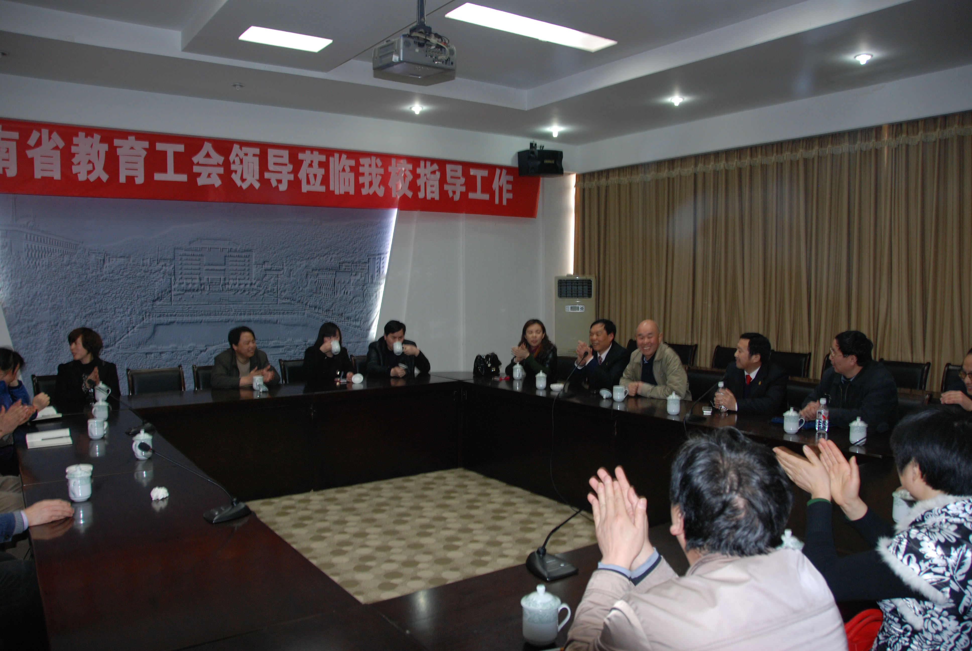3月26日下午,省教育工会主席曹光荣,副主席杨舜桃、王常华,高校部、普教育部、办公室、福利部等主要负责同志一行,莅临我校考察并指导工会工作。