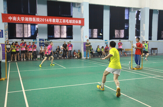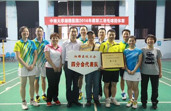 10月15日至16日,湘雅医院2014年教职工羽毛球团体赛在长沙大学南校区羽毛球馆举行。来自全院十个分工会的10支队伍经过两天激烈角逐,最终第四分会代表队技高一筹夺得冠军,第八分会代表队获得亚军,第七分会代表队获得季军。