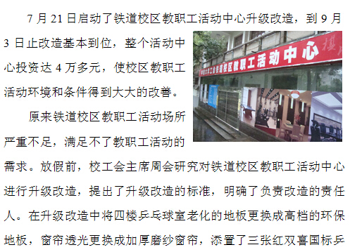 铁道校区教职工活动中心升级改造到位