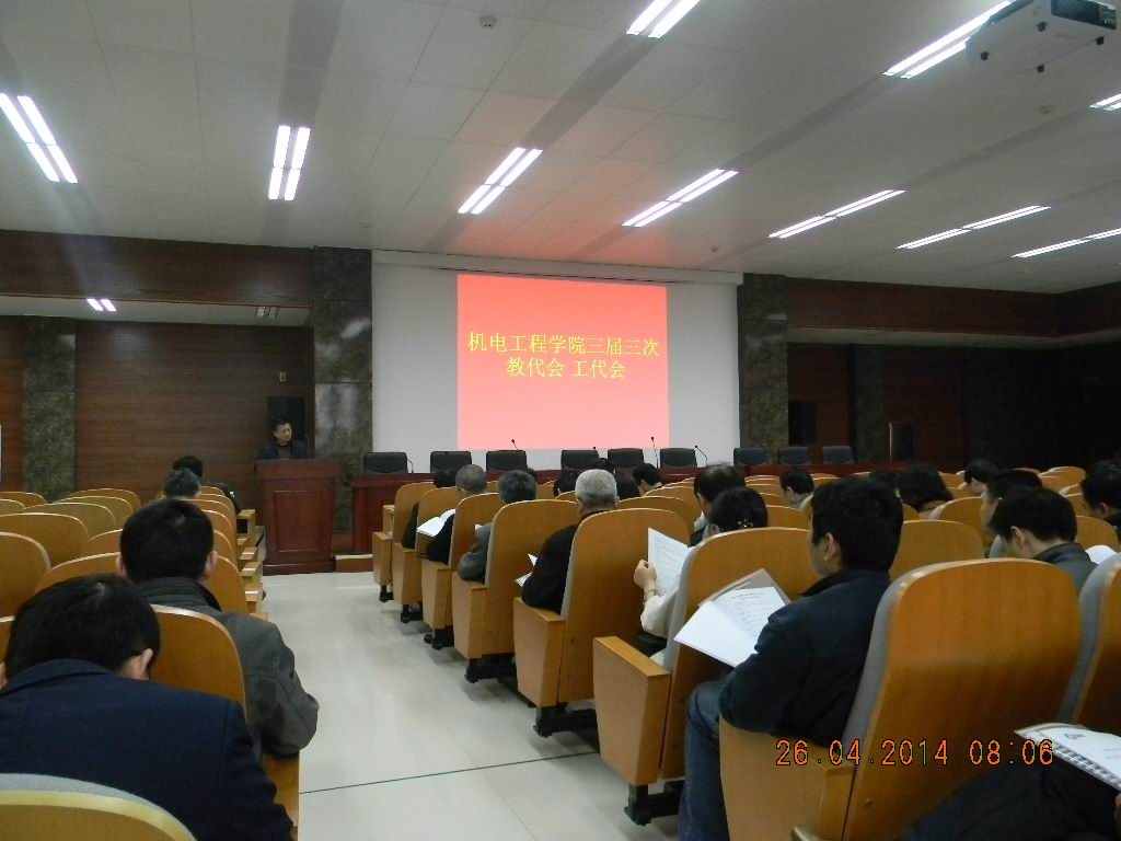 4月26日上午,机电工程学院在机电楼B座214报告厅召开三届三次教职工代表暨工会会员代表大会。50余名代表共同听取和讨论了院长工作报告,审议学院财务工作报告、学院部门工会工作报告及工会财务报告,讨论《tapplay官网机电工程学院年度考核暂行办法》、《tapplay官网机电工程学院年终业绩奖励分配暂行办法》等7项制度文件。