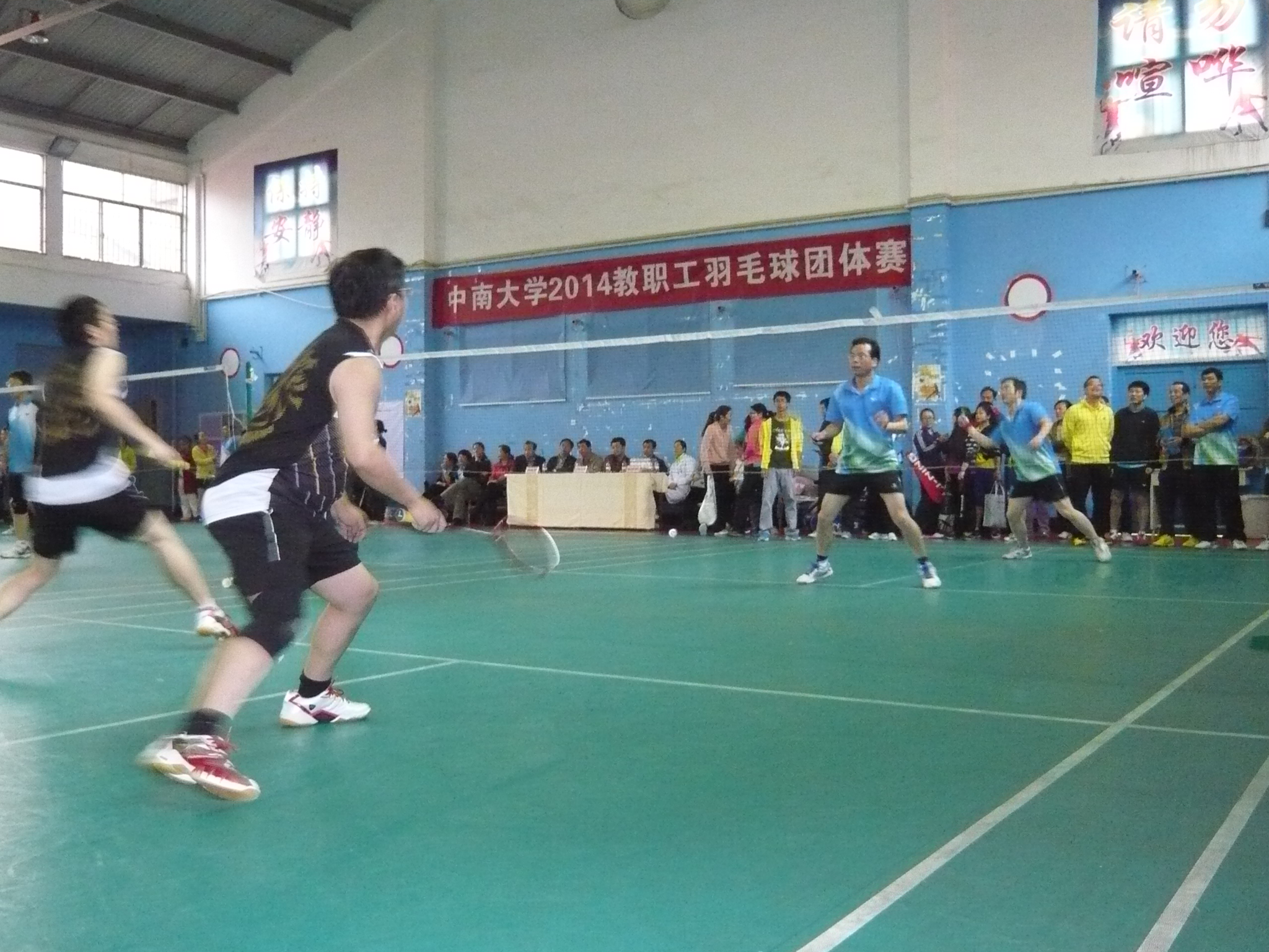 4月19日上午,2014年tapplay官网教职工羽毛球团体赛,在南校区羽毛球馆拉开比赛序幕,体育馆内人声鼎沸,31支代表队披挂整齐,蓄势待发,裁判员各就各位。8点30分比赛正式开始,第一轮共有12支队伍,分别在六片场地同场竞技,比赛一开始就进入白热化,啦啦队的呐喊声、助威声此起彼伏,场上各路人马抖擞精神,尽展球技,各领风骚:进攻一方时而跳起大力扣杀、时而劈吊、时而网前扑杀;防守一方站稳阵脚积极防御,档网、放网、平抽挡、倒地救球,双方攻防转换,你来我往,一个球十几个回合才能见分晓。观众对运动员们的精彩表现时常报以掌声,叫好声、喝彩声不断。