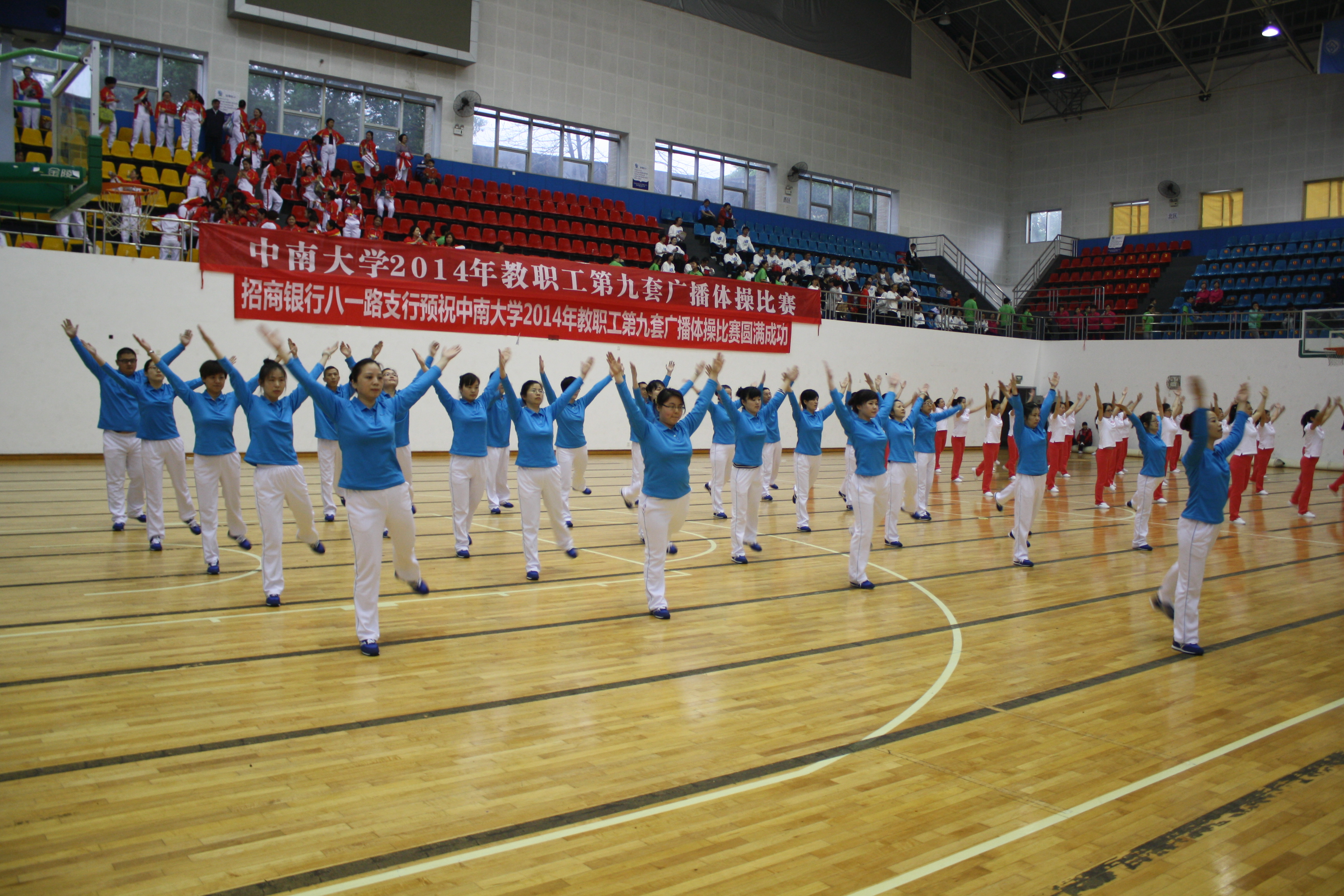 3月30日上午,tapplay官网2014年教职工第九套广播体操大赛在湘雅医学院新校区体育馆隆重举行。经学院工会精心选拔、组织培训,文学院26人的教职工代表队参加了此次比赛,并获得三等奖的好成绩。