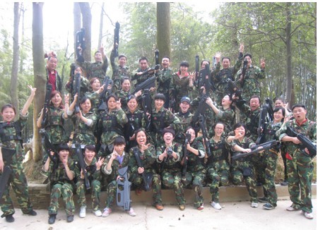 早上9点,全体职工就投入到紧张的拓展准备工作中,换上迷彩服,排好整齐的队伍,每一位参加素质拓展的成员都以昂扬的姿态准备迎接一天的训练。经过主教官的广场训话后,所有队员被随机分成了四组,经过组内讨论,铁鹰队、老虎队、OK队、友谊队应运而生,并精神抖擞,兴致昂扬地展现了自己的队名、队歌和口号。接下来四队两两分队进行了“丛林野战”和“异地传书”拓展训练,队员们在野战中的英勇,传书中的细腻充分展现了我们铁道分公司职工的团结和睿智。