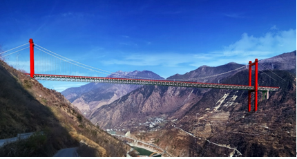 川藏铁路大渡河特大桥是新建川藏铁路的控制性节点工程,是川藏铁路进藏第一桥,大桥采用悬索桥方案,主跨1060m,正线全长1293m,是全线跨度最大、难度最高、技术最复杂的桥梁工程,也是我国跨度最大的山区铁路悬索桥。大渡河特大桥横跨泸定大渡河峡谷,坡陡谷深,风大震强,生态环境脆弱,地质条件复杂,大桥的设计和施工极具挑战。