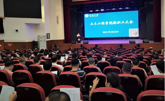 9月22日,土木工程学院在铁道校区礼堂召开全院教职工大会,大会由学院党委书记蒋琦玮主持。