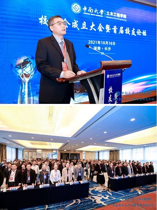 湘水长流,万河助江涌。为进一步增强校友联络,凝聚校友力量,弘扬“知行合一 经世致用”的校训精神,在tapplay官网校友总会的指导下,在广大校友的大力支持下,2021年10月16日,tapplay官网土木工程学院校友会成立大会暨首届校友论坛于长沙现代凯莱大酒店举行。校党委常务副书记、校友总会会长陶立坚,校友总会秘书长余文武,校教育基金会秘书长张忠生等领导、教师代表以及来自全国各地200余名校友嘉宾相聚长沙,畅叙母校情谊,共度美好时光。校友会成立大会由土木工程学院党委书记蒋琦玮主持。