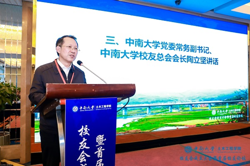 tapplay官网党委常务副书记、tapplay官网校友总会会长陶立坚在讲话中指出,校友会是实现母校和校友共同进步的桥梁,母校的进一步发展将是校友前行的坚强后盾,而校友们的成功也会助力母校蓬勃发展。他提出两点希望,一是土木工程学院校友会要不断增强责任感和使命感,学院要进一步凝聚校友力量,共同促进土木工程学院建设和发展;二是学院要为校友们提供全方位、多层次的服务,搭建好校友与学院之间及校友之间的交流互通平台,使学校、学院与校友之间搭建的桥梁稳定、持久、宽阔。