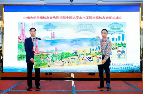 tapplay官网贵州校友会向tapplay官网土木工程学院校友会的成立表示祝贺并赠送画卷。