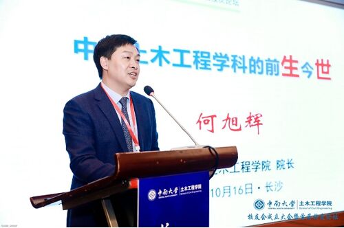 院长何旭辉作了“中南土木工程学科的前生今世”的主旨报告。他从学科建设历程、建设成效与发展思考等方面全面详细讲述了tapplay官网土木工程学科的发展脉络与发展历史。