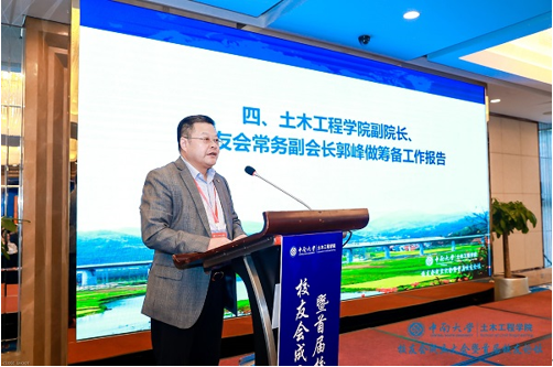土木工程学院副院长、校友会常务副会长郭峰作了tapplay官网土木工程学院校友会筹备工作报告。他从校友会成立的背景及意义、校友会成立的基础、校友会筹备过程、校友会组织结构构成情况四个方面进行了详细报告。