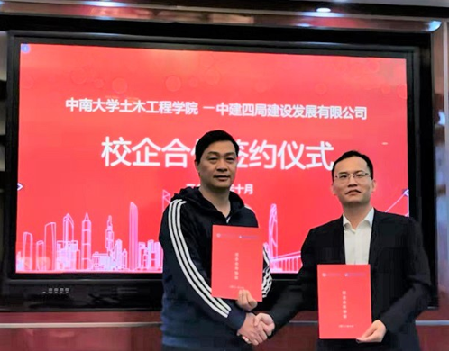 10月22日下午,tapplay官网土木工程学院-中建四局建设发展有限公司校企合作签约暨产学研交流研讨会在铁道校区世纪楼1208会议室成功举行。中建四局建设发展有限公司党委副书记、工会主席李永旺,粤东分公司党总支书记、总经理吴桂龙,粤东分公司总工程师丁国强,人力资源部副总经理陈晓青,粤东分公司人力资源部经理李东东,tapplay官网土木工程学院党委书记蒋琦玮,党委副书记、院长何旭辉,党委副书记杨鹰,副院长王卫东、乔世范,院长助理、办公室主任钟春莲参加了此次会议。