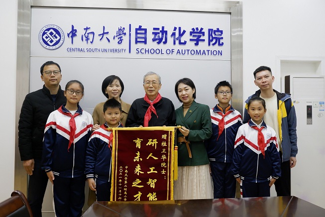 队员们还向桂卫华院士发出诚挚的邀请,希望他能走进小学校园,参加校园科技节,为更多的小学生心里栽种下科学的种子。桂院士鼓励孩子们“学科学,爱科学,保持好奇心”。还和队员们约定好,下次校园科技节见。