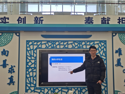 活动伊始,刘超强老师从自己的大学生活引入话题,简要介绍了自己充实并且精彩的大学生活:专业第一、获得7次奖学金、做家教、摆地摊等许多幽默风趣的故事吸引了同学们的注意。
