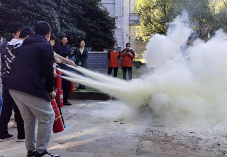 培训开始,贺志军书记强调了防火意识以及灭火器正确使用的重要性,并希望大家通过培训能掌握正确使用日常消防器材的方法。随后保卫处老师对干粉灭火器以及二氧化碳灭火器的功能和使用方法做了详细介绍,并为大家示范了干粉灭火器的使用要领。最后,同学和老师们按照所讲解的要点,包括如何开启灭火器、使用灭火器的姿势、把握灭火器的方向等,依次进行了实战演练,亲身体验了灭火器的使用过程。