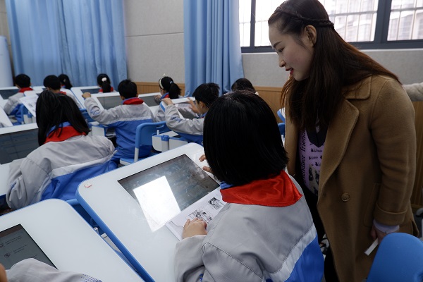 龙幸艳老师执教《比》,从生活小问题出发,借助智慧课桌椅完成课堂数据分析,精准推送,及时答疑。许琼老师执教《火车过桥》,从情境冲突进行问题研究,用直观动画再现复杂路程问题,助力学生思维可视化。王敏虹老师执教《交换律》、龚韵欢老师执教《认识面积》,将生活问题引入课堂,鼓励学生小组自主合作探究,教师拍照传屏进行实时课堂评价,培养学生理性思考能力。