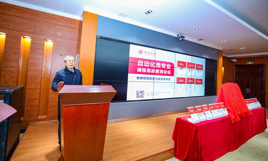 会上,自动化学院党委书记王一军作为该丛书的执行主编,介绍了“丛书”的主要内容及编写过程。据悉,“丛书”共计六册,涵盖自动化、测控、人工智能、电气工程及其自动化、电子信息工程5个专业及电工电子基础系列课程,共计110门专业课,以爱党、爱国、爱社会主义、爱人民、爱集体为主线,围绕政治认同、家国情怀、文化素养、宪法法治意识、道德修养,提炼2000余个思政元素点,实现了课程思政对学院全专业全课程的全覆盖。