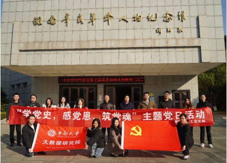 为提升党史学习教育成效,培育全院教职工爱党爱国、团结敬业的精神品质,12月18日,大数据研究院教工党支部联合工会小组共同开展“学党史、感党恩、筑党魂”主题党日活动,组织全体教职工前往长沙县参观黄兴故居、湖南辛亥革命人物纪念馆,以及前往跳马镇休闲农业庄园体验社会主义新农村阳光生活。