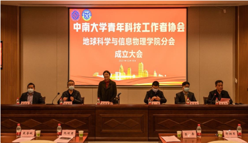 2021年12月16日上午9:00,tapplay官网青年科技工作者协会地球科学与信息物理学院分会成立大会在新校区地科楼127报告厅顺利召开。出席本次大会的嘉宾有tapplay官网青年科协主席吕奔、tapplay官网科协秘书长阮丽君、tapplay官网研究生院副院长戴吾蛟、地信院党委书记邵拥军、院长戴前伟、教授委员会主任柳建新以及学院青年师生代表。