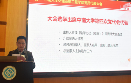 统票期间,学院党委书记贺志军同志作了题为“凝心聚力,奋发有为,引领学院全面发展,高质量建成全国党建标杆院系”的党委工作报告。贺书记在报告中回顾和总结了过去三年的工作:一是以政治、责任、纪律三个导向形成上下联动的合力,二是以党建工作的广度、深度、温度三度夯实党建工作基础,三是以丰富活动内涵、提升时代内涵、强化服务内涵这三个途径打造党建工作平台,四是以培育民主、育人、和谐三个氛围发挥党建服务功能,五是以着力科技研发、师资队伍、人才培养、国力影响、社会服务、学科文化六个发展凸显党建引领作用。随后,贺书记对今后的党建思路和学院的发展工作作了报告:全面推进党建质量提升计划,全面执行党建任务清单化管理,加强党建工作队伍建设,加强分党校建设,全面落实意识形态工作,持续推进科技创新能力提升计划,持续实施国际影响力提升计划,持续推动与国铁集团、中国中车等轨道交通企业的战略合作。最后,贺书记还号召全体党员保持奋发有为的精神状态,提高推动学院科学发展的能力,脚踏实地,改革创新,为建成具有中南特色的全国党建工作标杆院系、交通运输工程一流学科而努力奋斗。