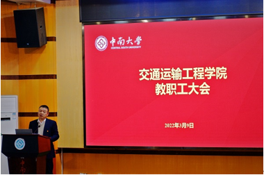 大会最后,高广军院长就学院未来发展布局发表讲话。高院长首先全面介绍了学校落实《深化新时代教育评价改革总体方案》,实施人事制度改革的精神,并详细解读了《交通运输工程学院教学科研类岗位聘用实施细则》、《交通运输工程学院高级专业技术职务(教师科研系列)评审条件实施细则》、《交通运输工程学院教师科研系列正高三级及以下岗位分级实施细则》三个文件。之后,高院长从人才培养、师资队伍建设、科学研究、文化建设等方面,分析了学院面临的问题和形势,提出了建设一流学科的任务及举措。勉励教职工以立德树人为根本,潜心教书育人,服务国家重大需求,加强关键领域核心技术攻关,推进一流学科高质量发展。