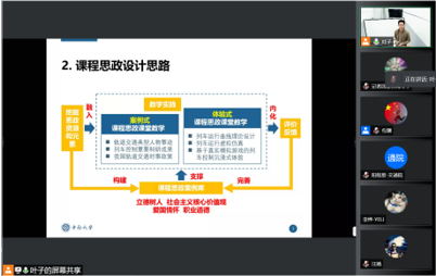 比赛结束后,谭希培教授(图8)进行了点评。他依次点评每个老师在比赛时的表现,部分老师从生活中的案例引入课程思政,深入浅出,不仅直观易懂,且这种浸润式的课程思政模式,增强了学生的代入感,润物无声,值得推广。同时谭教授指出现阶段的教学要摆脱“课程+思政”这种搭积木的模式,逐渐从“课程谈思政”过渡到“课程融思政”的模式,将思政内容自然巧妙的融入课程,老师也要有自己的态度,在教学过程中注重课程难点与思政的融合,做到真正的润物无声。