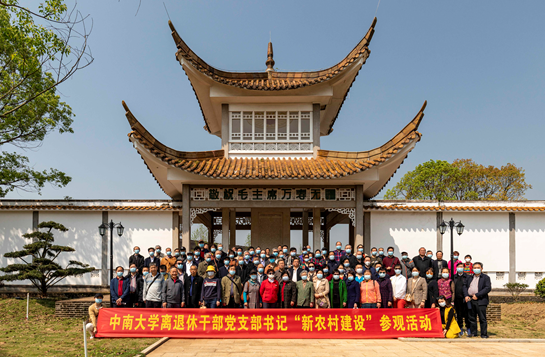 4月20日上午,离退休工作处党委(党校)组织全校80余名离退休党支部书记赴长沙县春华镇武塘纪念亭、抛砖屋场、春华渡槽等红色教育基地参观见学,感悟开国领袖和领导先辈的“三农”情怀,观摩长沙县新农村建设发展成果。
