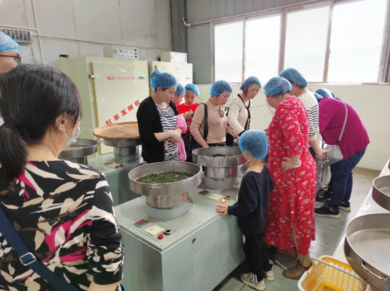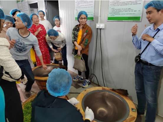 在茶叶工厂技术人员的讲解演示下,老师们很快掌握制茶要领,开始动手炒茶-搓茶-烘茶等工序。