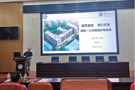 接着,刘又年院长代表学院对退休教师表达了衷心的感谢,对新进教师送上了美好的祝愿。他以“踔厉奋发 笃行不怠 团结一心昂首阔步向未来”为题,总结了学院近年的发展和在学科建设、人才培养等多方面的成果,并指出了现阶段还需努力的方向,布置了新学期的工作,鼓励全院教师团结一心,再创辉煌。
