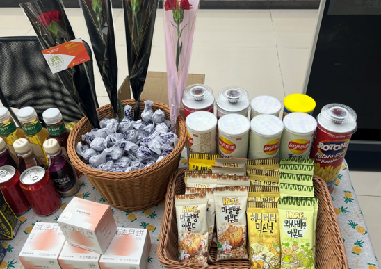 在交通楼一楼大厅里,长条桌上摆满了月饼、牛奶等零食和饮料供老师们选择,组成了一个小小的能量加油站,为辛苦工作的老师们“充电”加油。