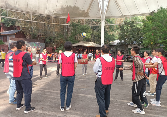 上午八点半,老师们准时抵达了峰峦秀削,绿荫匝地的基地。在教练的带领下,老师们被分为黄、红、蓝、橙四个团队。首先是团体竞技小游戏环节。每个队要求在最短的时间内完成接力运球入杯、拽鼓击球、极速排位等四个项目。