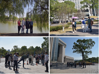 由于周三上午有课,大多数工会小组选择下午组织成员健步。从新校区外语楼出发,平时伏案工作或在讲台上引经据典的教职工们,个个化身成运动员,轻装简行、活力满满。穿过有容桥后沿着玉带路向图书馆迈进,河边垂柳随风飞扬,送来阵阵桂香;河里黑白天鹅翩跹起舞,好似在为我们加油鼓劲。大家欢声笑语,或俩俩一对,或三五成群,时不时停下脚步,欣赏美景、合影拍照,边走边聊。在欢快轻松的气氛下,在秋日微醺的暖阳中,不知不觉竟已绕着新校区走了3个多小时。活动快结束时,纷纷拿出计步器,互相打趣,“我的步数比较多”,“不行,你还要再多走走”……太阳已西斜,但我们的热情丝毫不减。