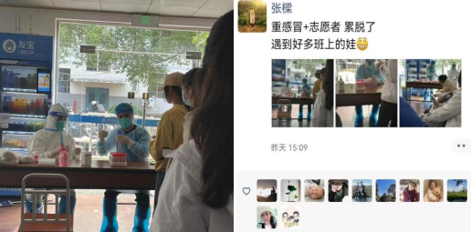 管理教工支部党员教师张樑身患重感冒,依然坚守在岗位上,认真为前来参加核酸检测的学生们逐一扫码。他表示,作为志愿者参与学校核酸检测,助力抗疫大局,义不容辞,深感荣幸。疫情终会过去,静待春暖花开,一起相约赏花。