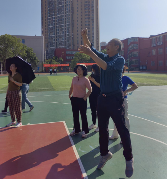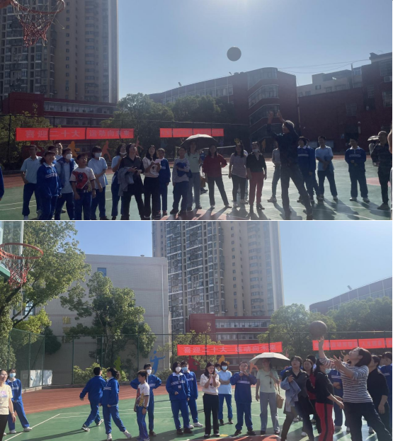 尽管并非每人都能百投百中,但不管投中与否,教师们都相互喝彩,鼓励,篮球场上洋溢着浓浓的暖意。