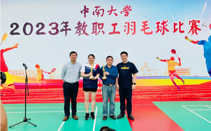 经过90场比赛的激烈角逐,于16日下午4点比赛结束。出版社、体育教研部荣获本次教职工羽毛球比赛第一名,校机关、土木工程学院分别荣获第二名和第三名。粉末冶金研究院、资产经营有限公司、计算机学院、第一附属小学、交通运输工程学院分别获得第四名至第八名。颁奖仪式由校工会副主席何庆文主持,校党委副书记、校工会主席付刚华、校工会常务副主席陈玉如、体育教研部总支书记李顺求、体育教研部副主任李忠分别为获奖单位颁发了奖杯,并与参赛运动员、裁判员、工作人员合影。至此本次比赛在教职工们一片欢声笑语中圆满落幕。