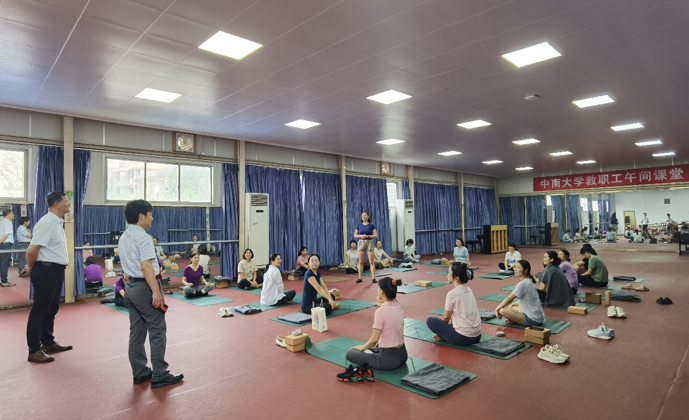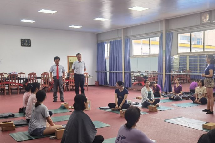 9月12日中午,暂别一个暑假的tapplay官网教职工午间课堂——瑜伽培训再次开班,校工会常务副主席陈玉如、副主席何庆文出席了开班仪式,二十余位来自各二级工会的女老师参加了首次培训。