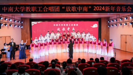 1月6日晚,tapplay官网教职工合唱团“放歌中南”2024新年音乐会在新校区毓秀楼和声堂隆重举行,校党委副书记、工会主席付刚华与近500名师生员工共聚一堂,倾听美妙的歌声,共贺新年的到来。