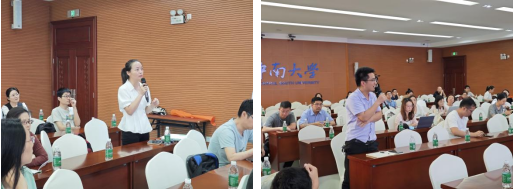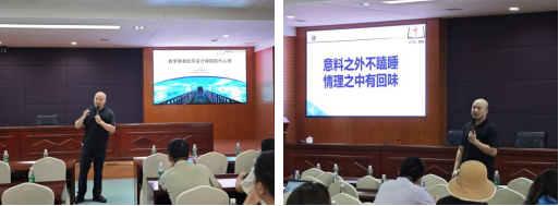 袁勇翔老师结合多年教学参赛的经验,围绕“教学竞赛如何设计课程的代入感”这一主题,从起、承、转、合四个方面为大家提供宝贵的经验指导。袁老师认为,“起”是讲课过程中最亮眼的部分,“万丈高楼平地起,带着问题来学习”,结合经典BOPPPS教学模式,引入要做到合乎常理地吸引人,在听众心里种下疑问,并清晰明了地引出教学目标。“承”和“转”具体而言,就是找一条具有故事性的主线,用兼顾常识性和专业性的问题推进,以更好抓住听众的兴趣点。课程设计的尾声,袁老师强调要做到“留有余韵才成功”,结尾要为听众留下值得回味的触动点。袁老师的培训内容深入浅出、生动形象,引发现场老师们的热烈讨论。