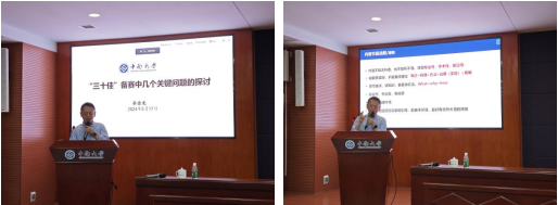 杜金龙老师做了题为《“三十佳”备赛中几个关键问题的探讨》的赛前培训,从竞赛课堂与真实课堂的区别、节段内容选取、教案/教学设计优化、课件完善、课堂讲授的注意事项等方面,对2024年tapplay官网第十二届“三十佳”课堂教学竞赛进行了深度解读,为参赛选手做了详细全面的指导。首先杜老师强调教学设计部分要关注教学目标,切忌讲大道理、生搬硬套、缺乏逻辑、强行融入、言行不一。教学课件制作,杜老师特别强调要避免过分追求美观,牢记每个元素都要紧紧围绕课程内容服务,个人讲授要充分挖掘并发挥个人风格。随后他针对在场老师的疑问结合自身经验给出了建设性的意见。
