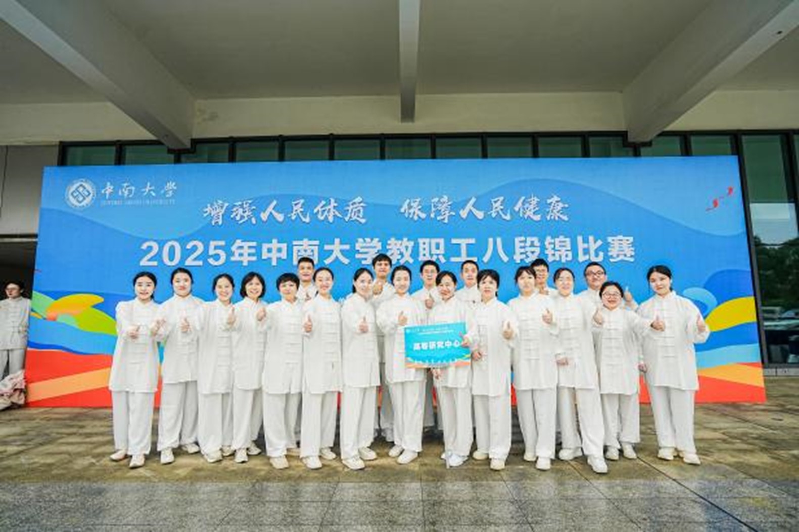学校发布比赛通知后,中心部门工会积极响应,广泛动员,得到了全体老师的热烈响应,迅速组建了一支中心职工高覆盖度的参赛队伍,形成了“人人想参与,个个愿锻炼”的生动局面。在一个多月的备赛期间,队员们克服工作任务繁重的困难,利用业余时间刻苦集训。从最初的动作生疏到后来的流畅自然,从简单的招式模仿到对呼吸与意念的深入体会,每一次抬手、每一次抱拳都凝聚了大家的汗水与努力。训练场上,既有经验丰富的老师热心指导,也有初次学习的“新手”虚心求教,形成了互帮互助、共同进步的和谐氛围。