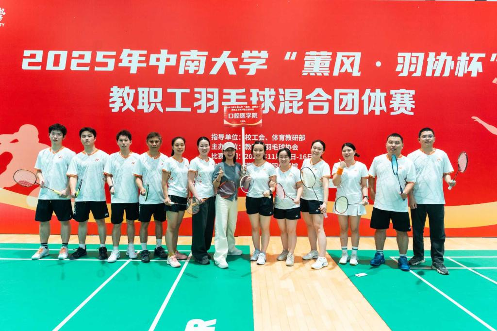 此次赛事汇聚了全校30支队伍、近500名教职工积极参与,竞争激烈。湘雅口腔医学院代表队由院党委副书记、工会主席许林勇担任领队,工会副主席张艺和工会委员张丹等全程为队员们做好组织后勤保障与服务。羽毛球队队长杨安文携手队员们从小组赛的稳扎稳打,到晋级赛的奋勇争先,大家默契配合、战术清晰,网前截击、后场扣杀、灵活救球等精彩瞬间频现。队员们来自临床一线、机关管理等不同岗位,平日里他们是救死扶伤的医务工作者、默默奉献的行政人员,赛场之上则化身活力四射的运动健儿,面对实力强劲的对手,大家始终秉持“友谊第一,比赛第二”的原则,每一分都全力以赴,用汗水诠释着永不言弃的体育精神。尽管未能更进一步跻身八强,但队员们在赛场上展现出的团结协作、顽强拼搏的精神风貌,正是我院教职工精神内核的生动写照。大家纷纷表示,将把赛场上的拼搏劲头与协作意识带回工作岗位,以更饱满的热情、更昂扬的状态投身医疗服务与医院发展事业。