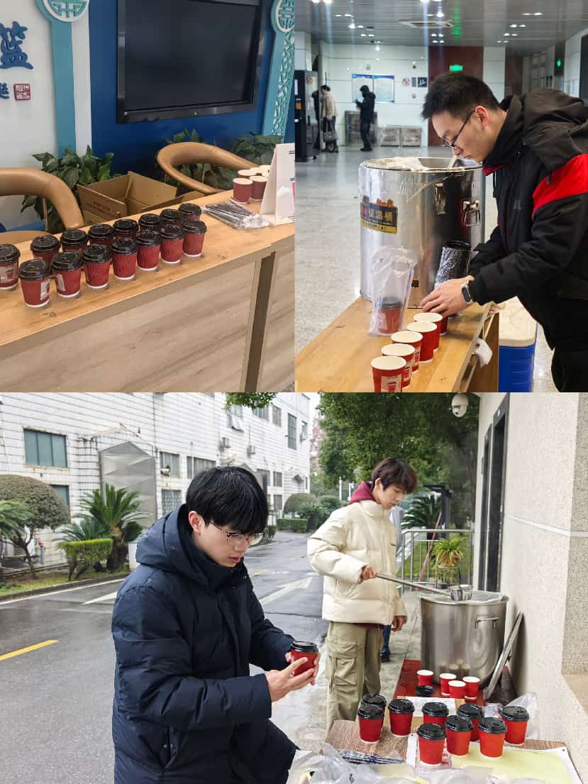 此次活动是粉冶院工会践行人文关怀、服务师生职工的具体举措。清晨时分,各点位的志愿者们便已就位,整齐摆放好保温桶与一次性纸杯,醒目的活动标语吸引了过往师生职工的目光。
