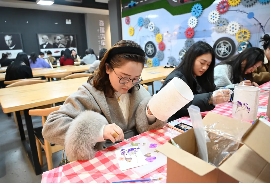 随后,队伍前往昭山途居露营基地,开启富有创意的手工体验环节。在专业老师的指导下,学院老师们一同亲手制作非遗漆扇和手工台灯。从调色、点染到最终成形,每个作品都融入巧思和情感,成为独一无二的艺术品。手工活动让大家体验了传统技艺的魅力,更在协作中加深了彼此的情谊。活动最后,学院领导和大家共进晚餐,在温馨愉快的氛围中为一天行程画上圆满句号。