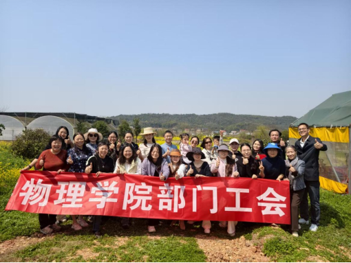 阳春三月,万物复苏,恰逢湘江新区第11届含浦油菜花季,正是踏青赏景的好时节。为庆祝“三八”国际妇女节,丰富教职工业余文化生活,物理学院部门工会于3月14日组织女教职工前往长沙市岳麓区沃之园生态农庄开展以“春风拂金浪・巾帼绽芳华”为主题的活动。学院全体女教职工,副院长阳军亮、工会副主席黄寒、大学物理中心主任孔德明、物理系主任王辉等男教师代表参与此次活动。