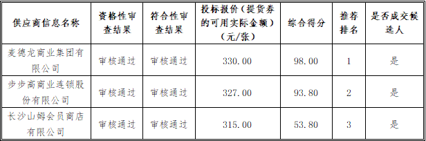 根据招标文件的规定:当合格供应商为3家时,取综合得分排名前2名的供应商为中标人。