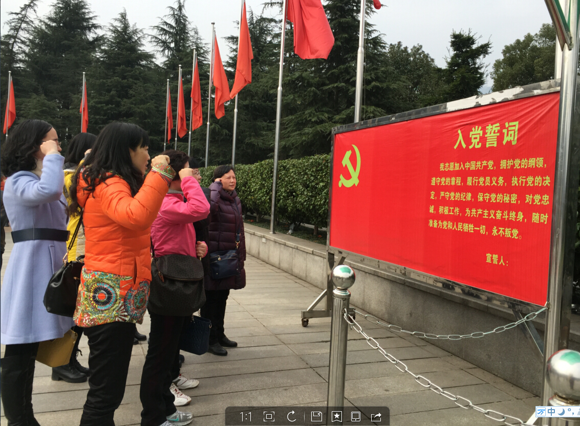 上午九点三十分抵达韶山,女职工们列队来到毛主席铜像广场,举行了庄严的瞻仰仪式。铜像面色似微笑,似沉思,目光坚定地望向远方,使人油然而生一种敬意和亲切感。之后,全体党员在毛主席铜像旁重温了入党誓词,大家铿锵有力的誓言回荡在广场上空,精神上再次受到深刻洗礼。接下来,参观了毛泽东纪念馆、毛泽东遗物馆、毛泽东故居。女职工们全程认真观看,专心聆听,并且不时用相机和钢笔进行记录,收获颇丰。